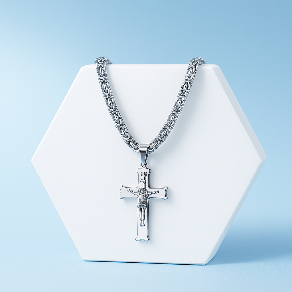 - Design: Klassisches Jesus-Kreuz mit starkem Symbolcharakter